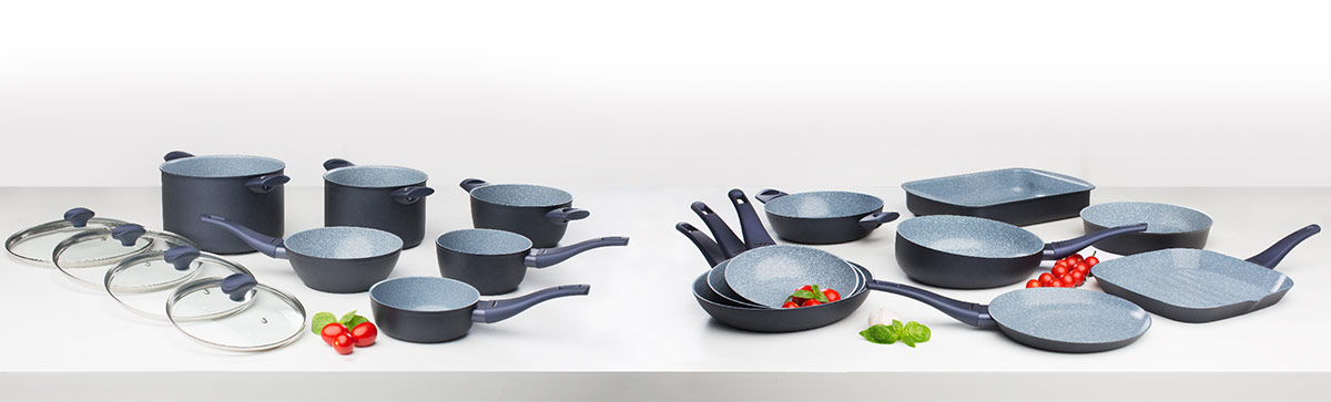 Prodhuar me një dizajn tërheqës dhe modern: smaltin e silikonit blu në veshjen e jashtme me harmonizimin e efektit të gurit dhe shtresës qeramikë në pjësën e brendshme. Shkëlqim dhe stil modern që përshtatet në çdo kuzhinë.