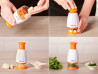 Pajisja qëndron në pëllëmbën tuaj dhe ju mund të prisni gjithçka për supën, sallatën ose salcën me një lëvizje: shpejt, pa mundim dhe në mënyrë të barabartë.